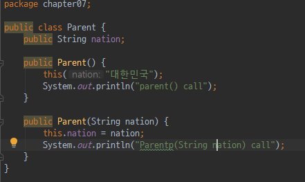- this() : 객체 자신의 또 다른 생성자를 호출할 때 사용합니다.
